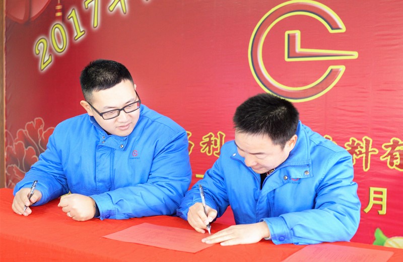 湖北昌利公司各部門負責人跟總經理簽訂2018年度工作目標及考核責任狀。昌利公司在2017年的工作中穩中有進,進中有變,變中向好,取得這樣可喜的成績,更為2018年的發展堅定了信心,振奮了士氣,凝聚了力量,一路向著目標奮進。
